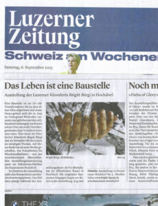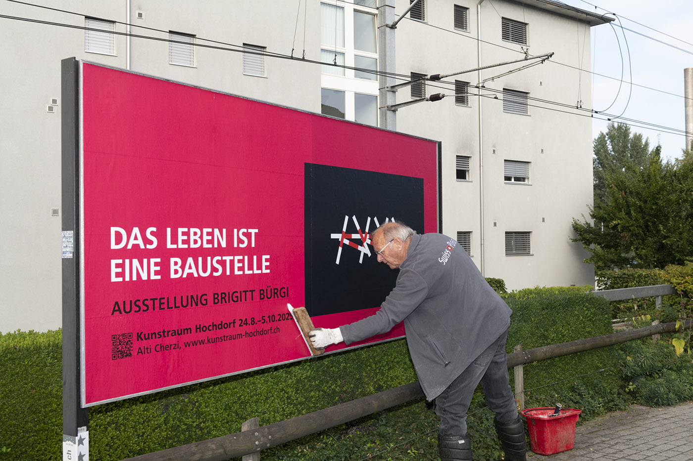 Die Baustelle dient der Künstlerin Brigitt Bürgi (geb. 1955, lebt und arbeitet in Hitzkirch LU) als Metapher für das Leben als ständigen Prozess. Mit ihrer Ausstellungsinszenierung macht Brigitt Bürgi die grosszügige Industriearchitektur des Kunstraums Hochdorf wieder zu einem Werkplatz und – ganz im Sinne eines Kunstortes – zu einem Wirkplatz.