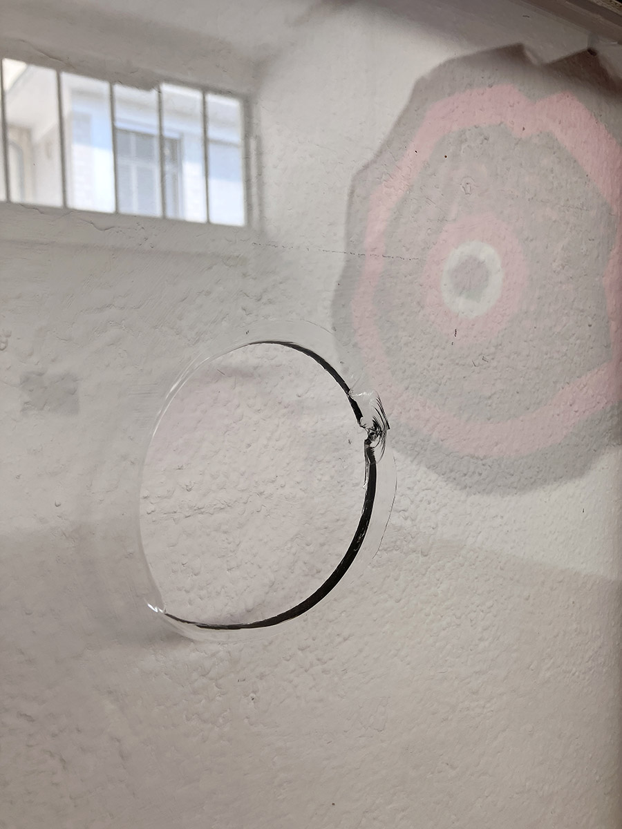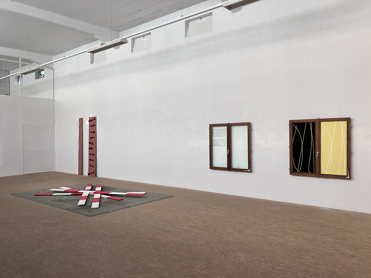 Fenster schwarz-gelb, 2025, bedruckte Folie auf zweiflügeligem Altbaufenster, 140 x 126 x 5 cm
